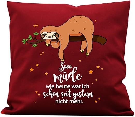 Wandtattoo Loft Bedrucktes Baumwolle Kissen Faultier So Mude Wie Heute War Schon Seit Gestern Nicht Mehr Bordeaux Roter Baumwollstoff Mit Farbigem Motiv Inkl Fullung Aus Polyster Amazon De Kuche Haushalt